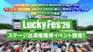 歌特化ライブ配信アプリ「ColorSing」が、今年も人気音楽フェス「LuckyFes'26」のオープニングアクトに出場決定!この夢のステージに立てるLシンガーを最大20名募集するイベントが開催されます。