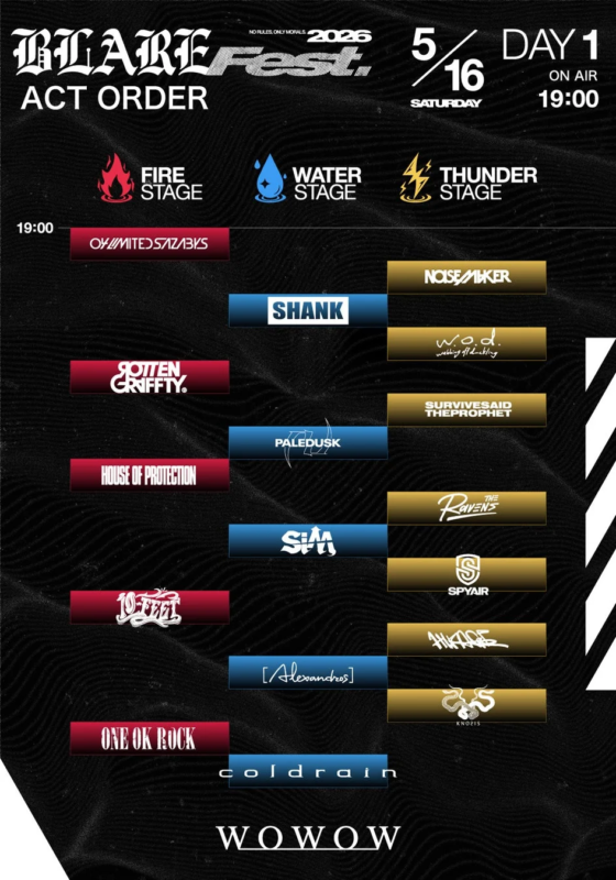 「BLARE FEST. 2026」がWOWOWで放送・配信決定!豪華アーティスト勢ぞろい!